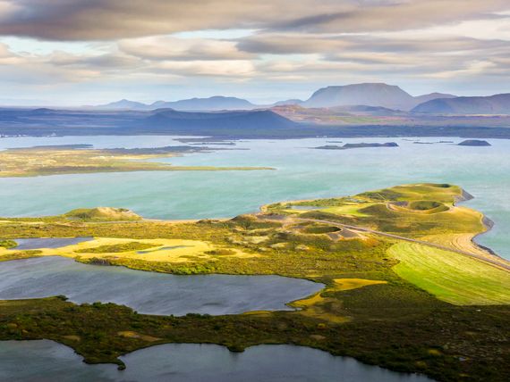 Przejazd pod Godafoss (Wodospad Bogów), w którym pogańscy Wikingowie symbolicznie pożegnali się ze swoimi tradycyjnymi wierzeniami. Następnie droga wiedzie wzdłuż jeziora Myvatn (Jezioro Komarów). Spacer przez naturalny lasek Hofdi nad brzeg, z którego widać zanurzone w wodzie formacje lawowe. Postój przy dolinie lawowej Dimmuborgir. Przejście szlakiem wytyczonym między bazaltowymi słupami o fantastycznych kształtach. Przejazd pod żółtą górę Namafjall; spacer po terenie Hverarond, wśród gorących fumaroli, solfatarów i jeziorek błotnych. Wokoło rozciąga się kamienna pustynia, gdzie rzeka Jokulsa a Fjollum tworzy malownicze wodospady. Postój i przejście nad skalną krawędź; podziwianie kilkuczęściowego wodospadu Selfoss. Następnie podejście do robiącego wielkie wrażenie wodospadu Dettifoss, pod względem ilości przepływającej wody (ok. 200 m3/sek.), najpotężniejszego w Europie. Przejazd do miasta Egilsstadir.